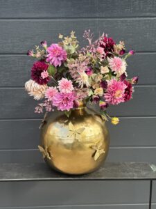 Het valt door de grootte meteen op maar zeker ook door de prachtige tinten wat in dit boeket verwerkt is.
